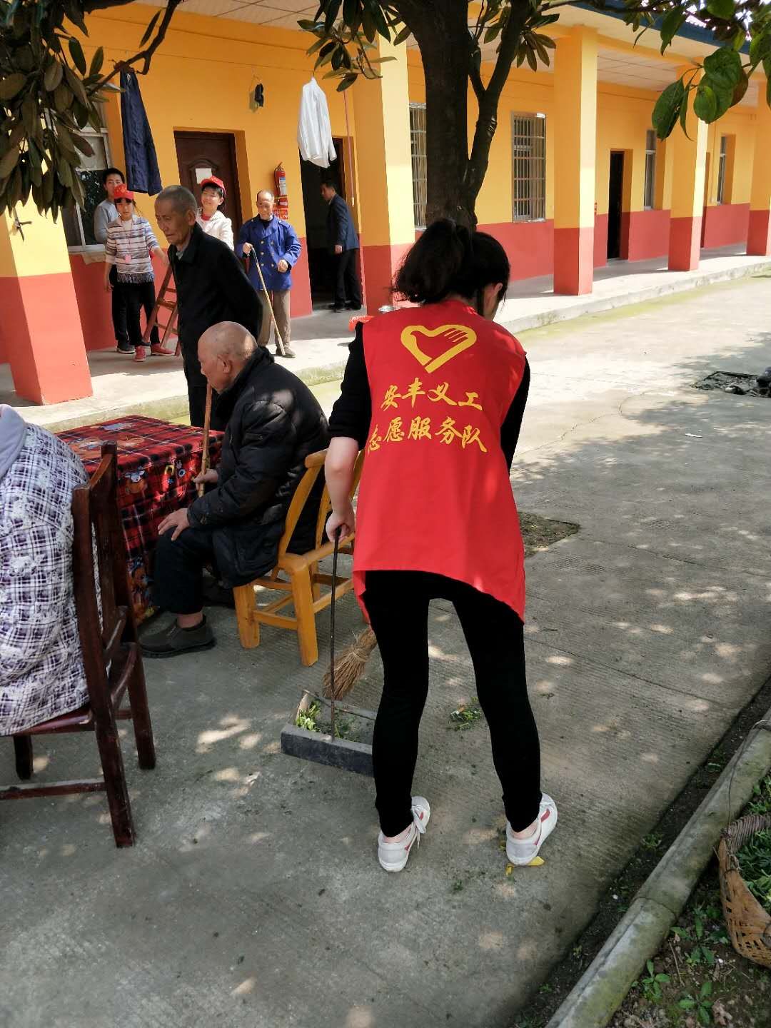 为老人们整理床铺、打扫卫生